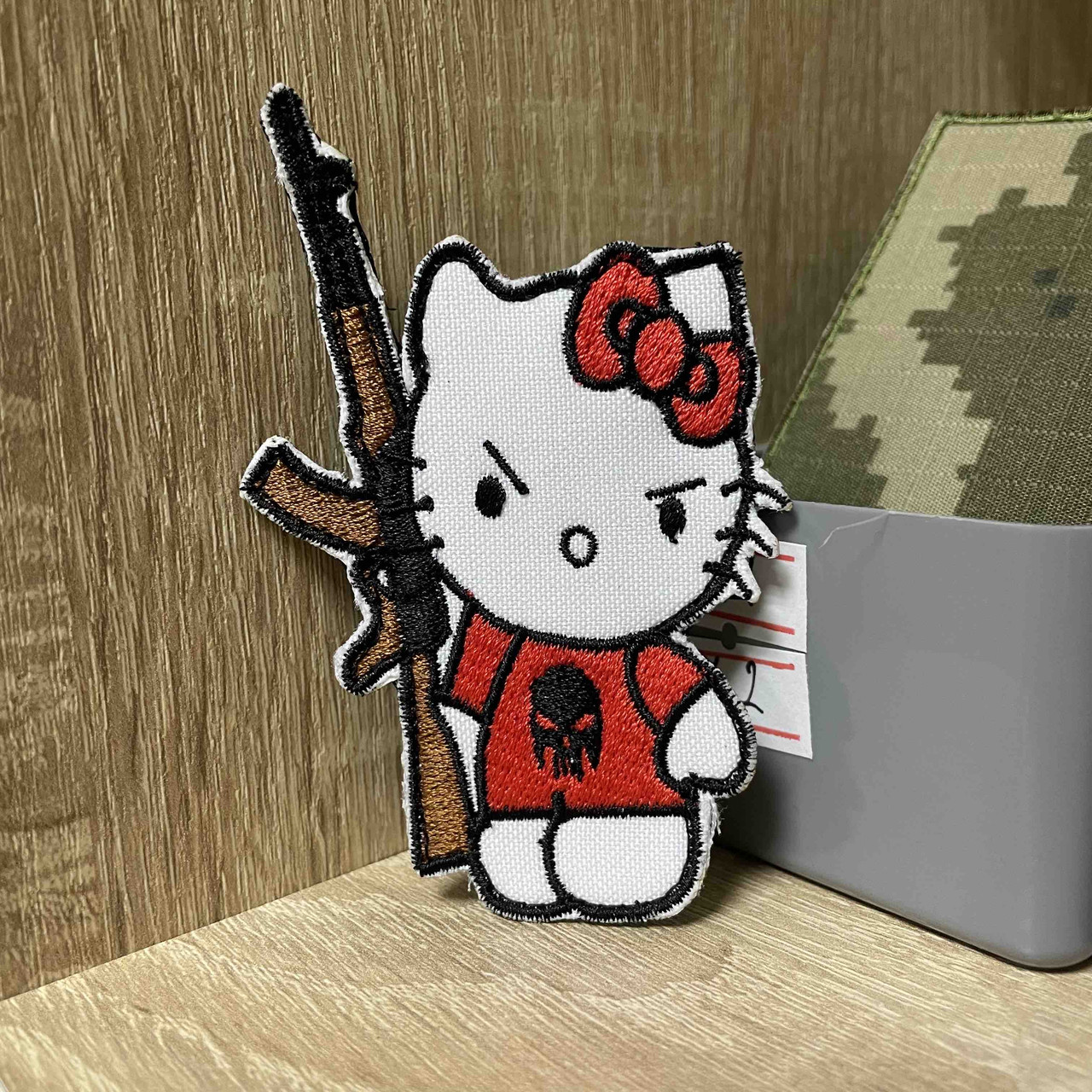 №449 Шеврон «Hello Kitty з автоматом» 9*6 см